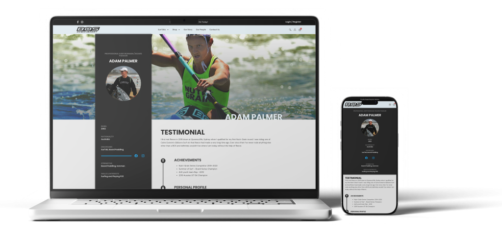 The site also included custom-built profiles for brand ambassadors – athletes who relied on BOS surf skis in their sporting careers.