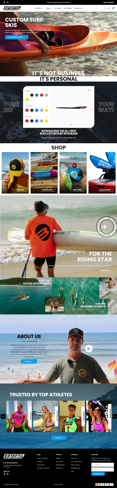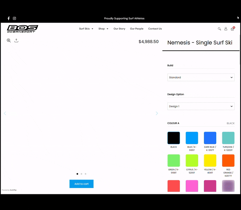 Facing increased competition from larger brands, the BOS team wanted to showcase their bespoke surf skis in a way that made self-serve customisation simple.