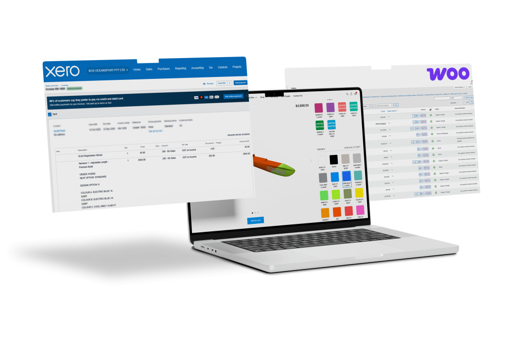 The middleware then generates a Xero invoice for the customer and a purchase order for BOS’s manufacturing hub.